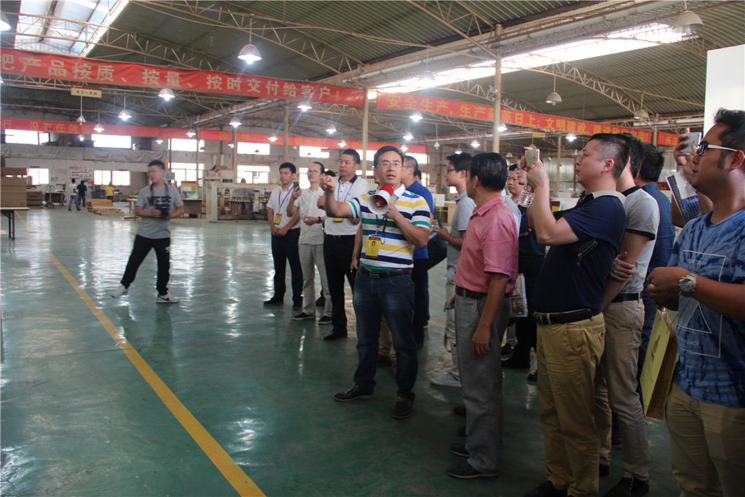 随后,覃祖荣副总经理带领与会人员参观了vsport集团的固装家具产品展示,介绍了相关产品,并带领大家到集团公司的生产车间现场,参观工厂的流水线生产情况,了解更多的工厂管理模式及产品质量控制等。