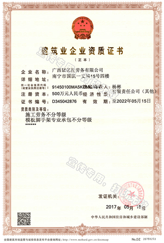 此次资质的成功申办,表明广西聚亿匠劳务公司的施工实力得到了国家住房和城乡建设部的充分认可,公司的品牌实力由此得到了提升,这也为vsport集团发展战略的实现奠定了坚实的基础。