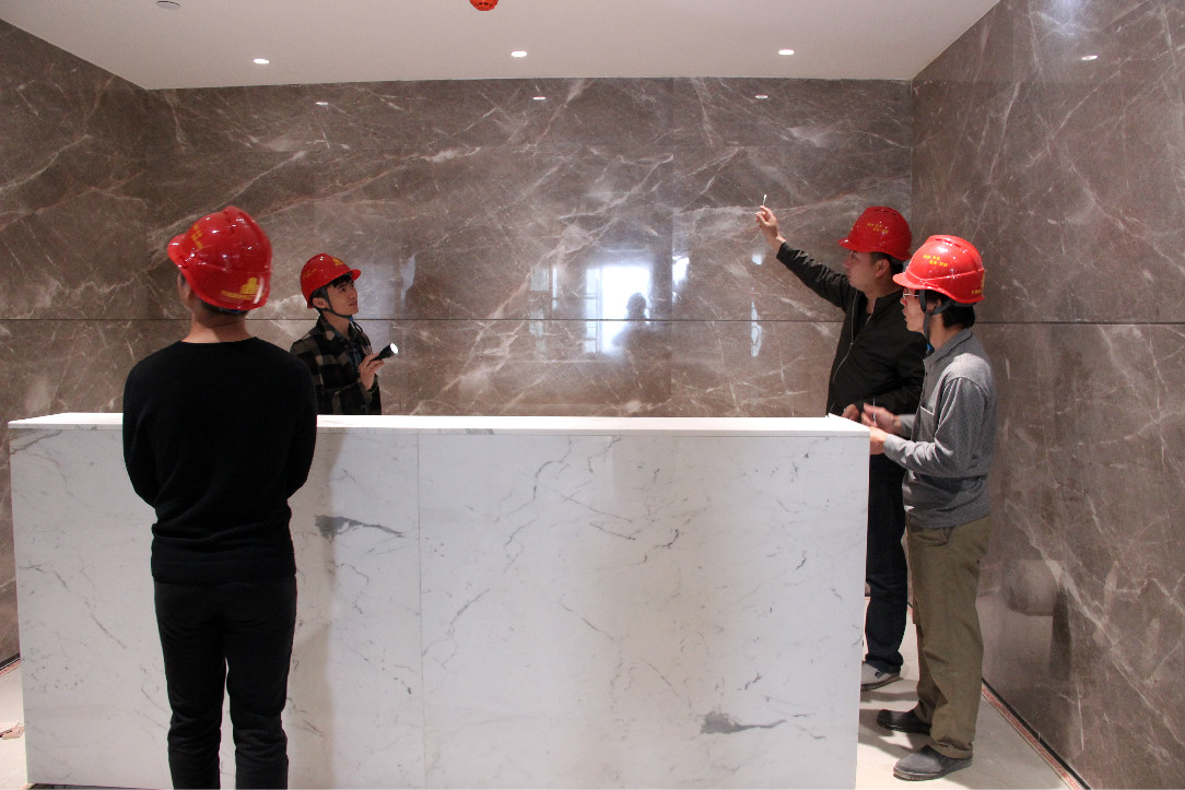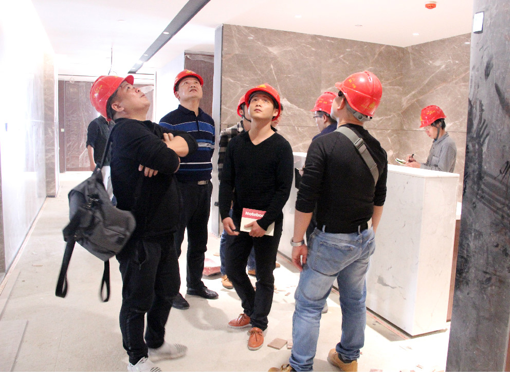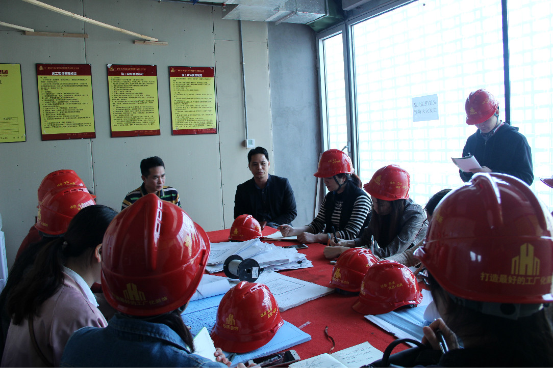 由vsport装饰集团承接的广西洋浦南华糖业集团办公楼层室内装修工程已经接近尾声,为不断完善和改进质量管理工作,提高质量管理水平,打造精品工程,2018年3月26日,集团组织工程中心质安部、工程管理部等多个部门联合成立自检自查小组,对该项目的质量、工艺进行全方位检查。