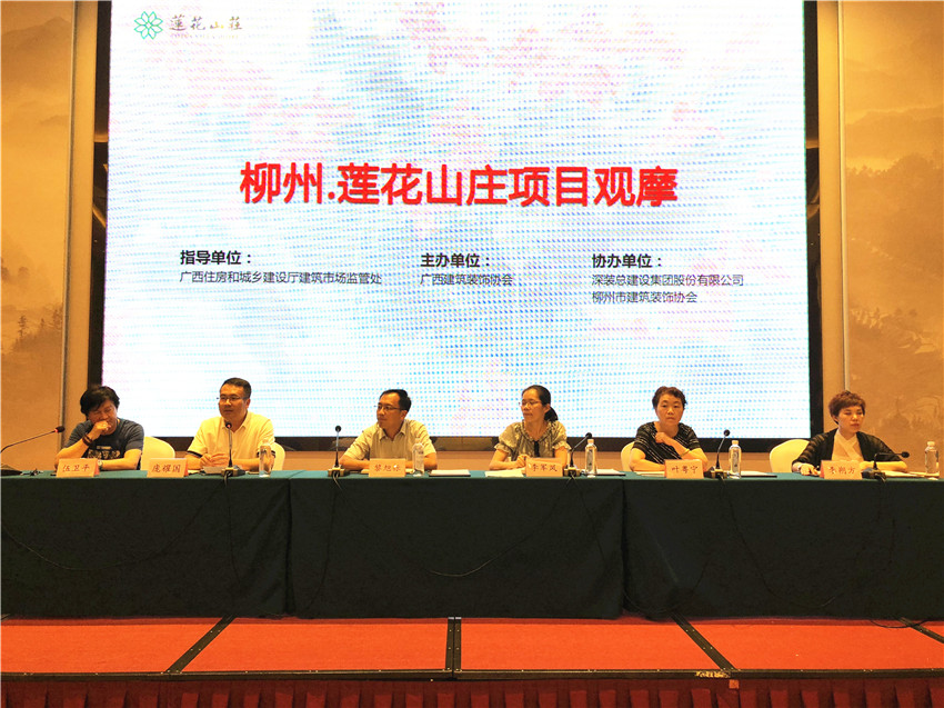8月17日下午,由广西住房和城乡建设厅建筑市场监管处指导,广西建筑装饰协会主办,深装总建设集团股份有限公司、柳州市建筑装饰协会共同协办的莲花山庄装修工程现场观摩活动顺利举办。