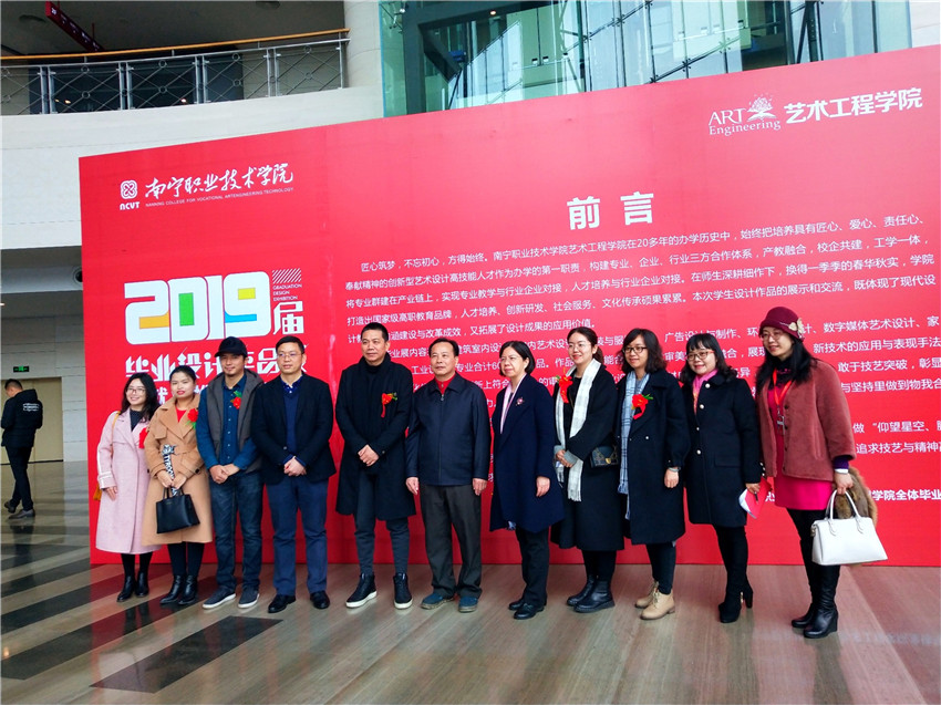 2018年12月14日,南宁职业技术学院艺术工程学院毕业设计作品展暨就业推荐洽谈会在广西南宁市博物馆隆重开幕,vsport董事长杨景忠受邀出席。