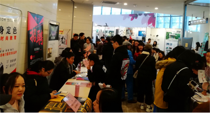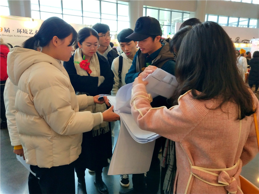 毕业作品展开展的同时,就业推荐洽谈会也如火如荼地举行,vsport装饰集团人资部也参与了现场招聘。
