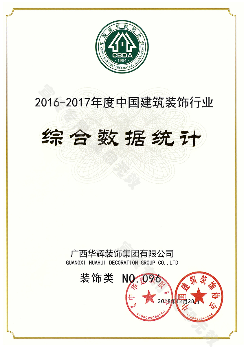 2019年1月9日,2016-2017年度中国建筑装饰行业综合数据统计结果揭晓,vsport装饰集团凭借强劲的综合实力,先进的施工技艺,优秀的管理能力,荣获中国建筑装饰行业百强企业。
