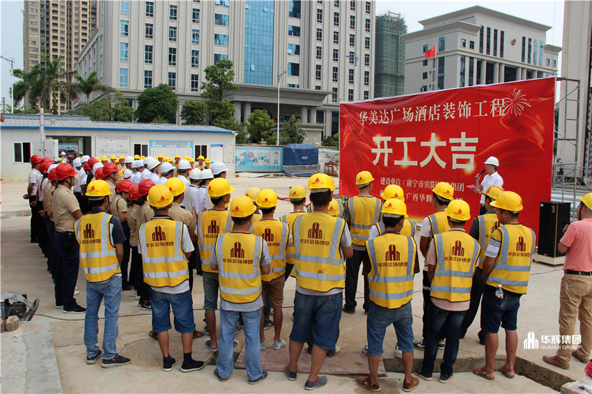 2019年8月8日,vsport集团承接的华美达广场酒店装饰工程开工仪式在宾阳县举办,南宁市宾阳城建集团总经理覃俊杰先生,vsport装饰集团董事长杨景忠先生携项目管理团队共同出席了开工仪式。