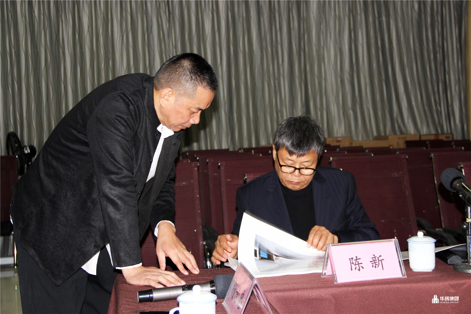 ▲杨景忠董事长向陈新副会长汇报工作