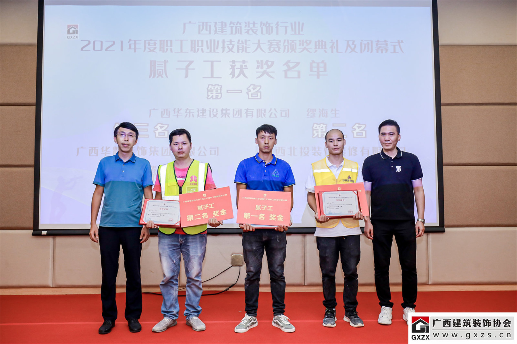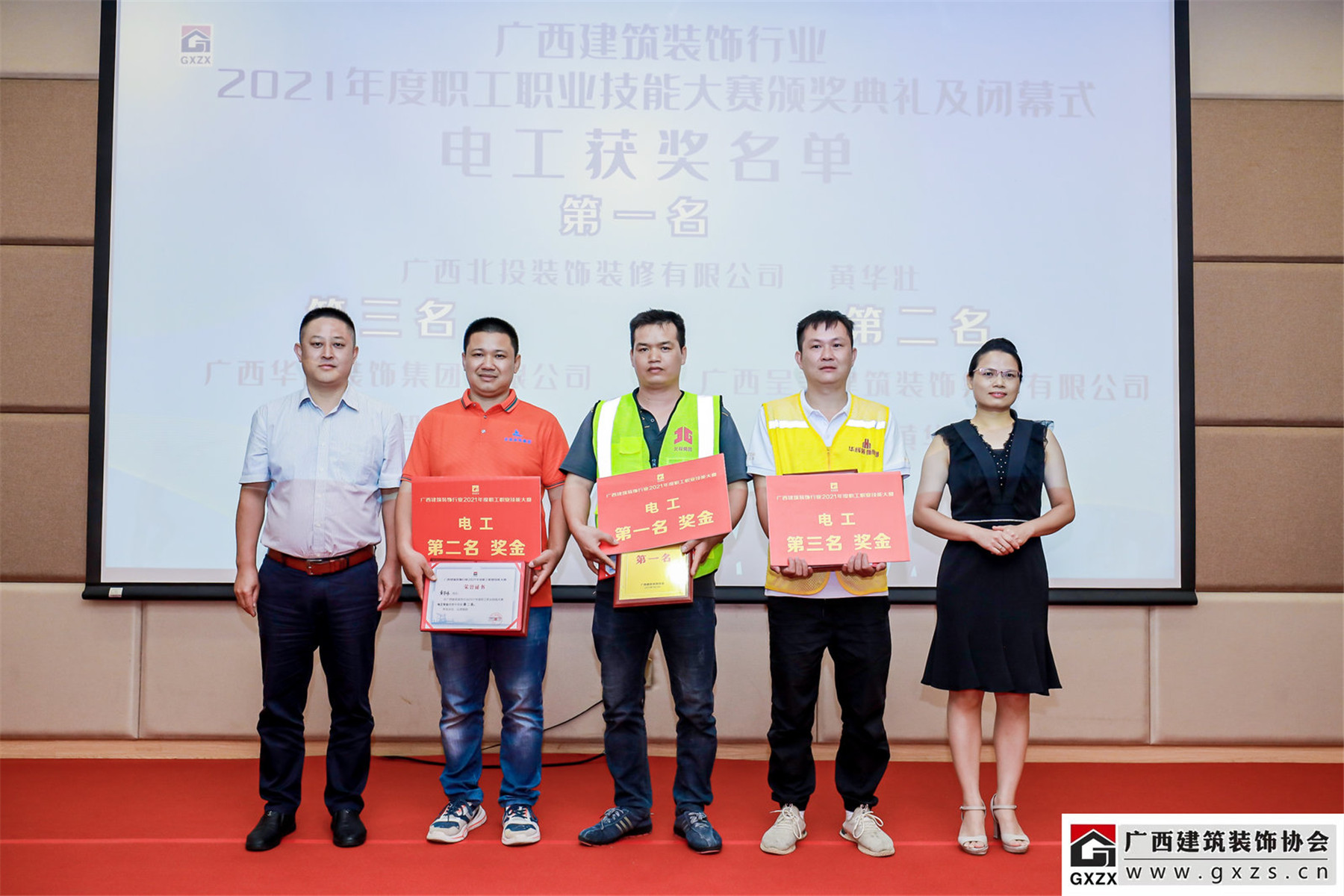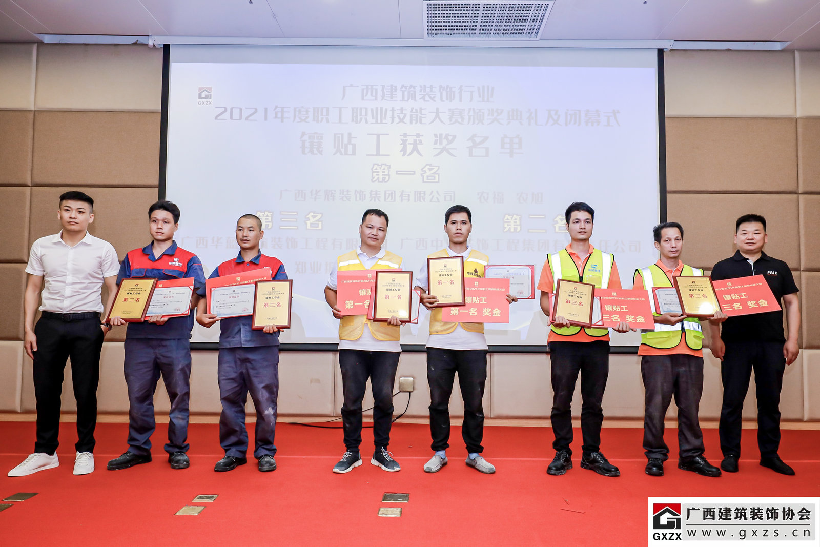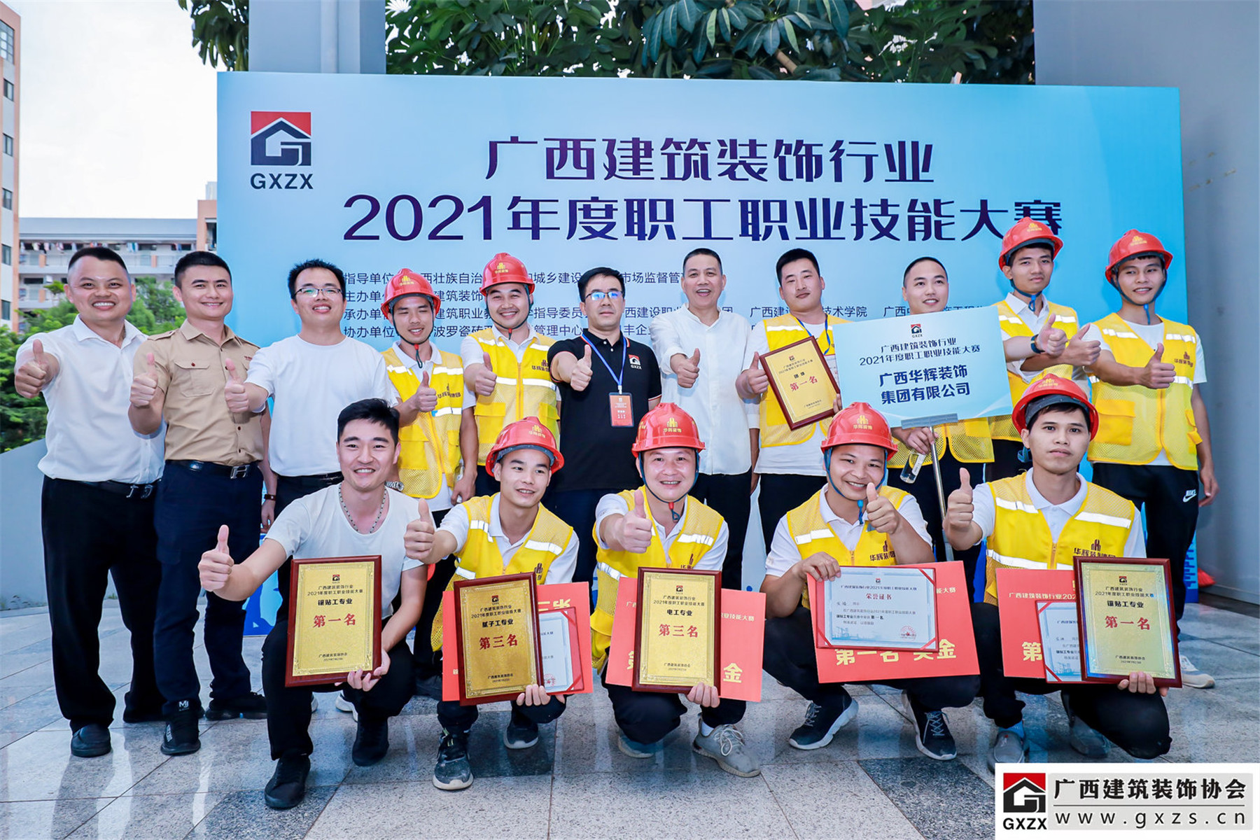 2021年7月23日,广西建筑装饰行业2021年度职工职业技能大赛在广西建设职业技术学院举行。vsport参赛选手荣获团体第一名且综合评分满分100分、镶贴工第一名、电工第三名、腻子工第三名的好成绩。