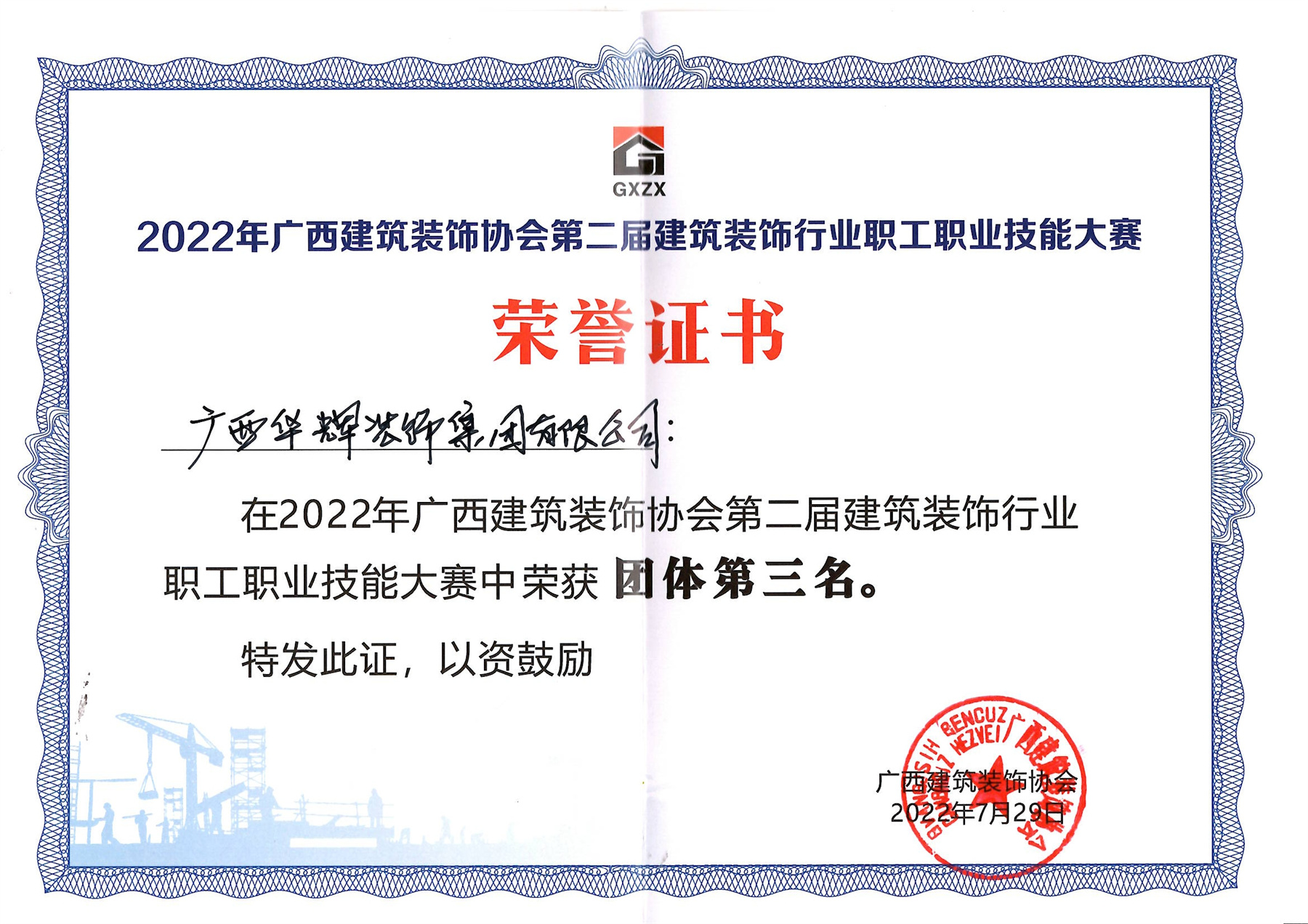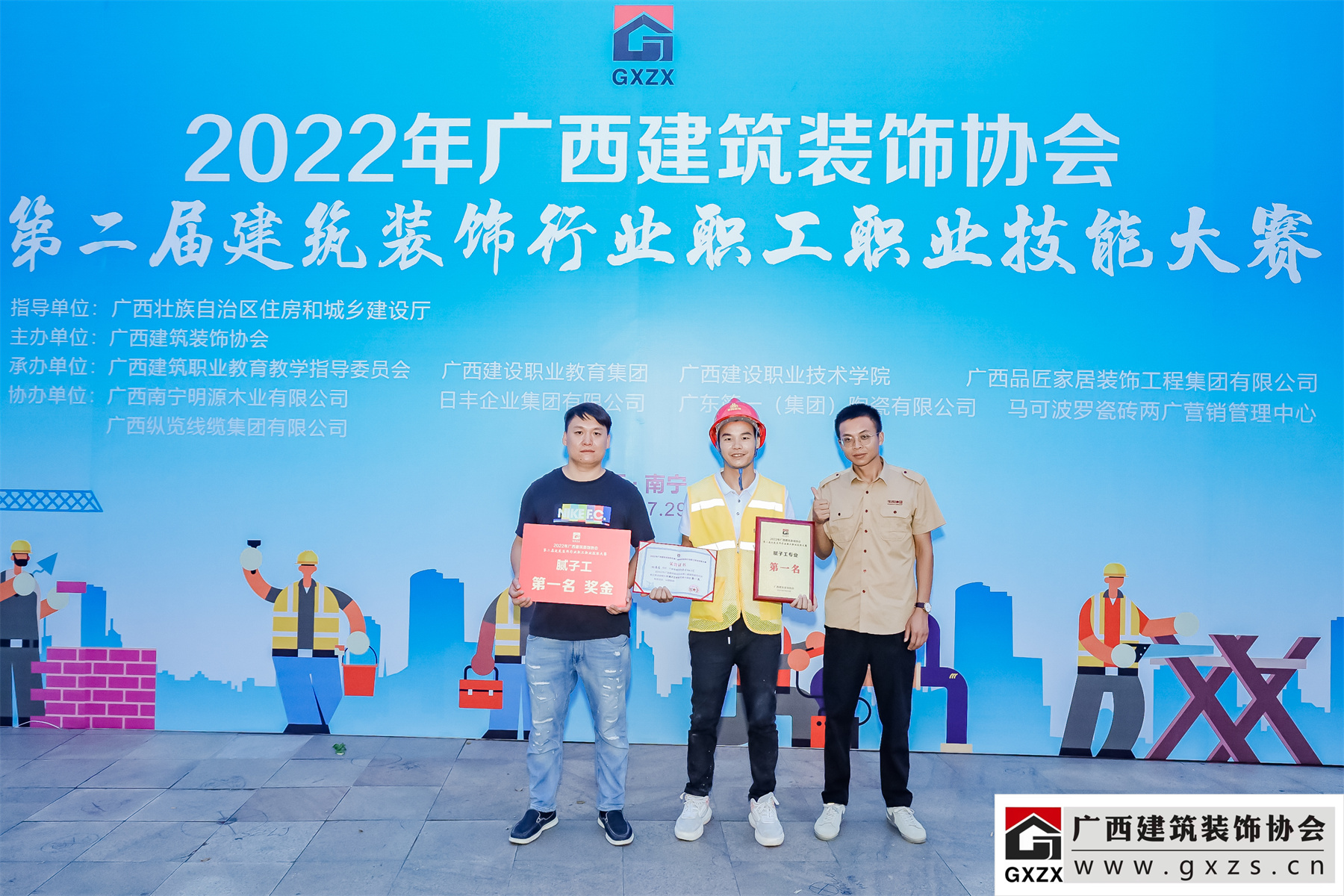 2022年7月29日,2022年广西建筑装饰协会“第二届建筑装饰行业职工职业技能大赛”,在广西建设职业技术学院落下帷幕,vsport集团荣获腻子工第一名、团队第三名、精细木工第三名、管道工和瓷砖贴面第五名的好成绩。