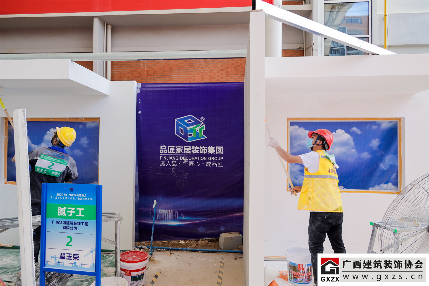 据悉,此次技能大赛由广西住房和城乡建设厅指导,广西建筑装饰协会主办;来自15家会员单位的63名选手参加腻子工、瓷砖贴面、精细木工、电工、管道工等5个项目的竞赛;分为理论(笔试)与实操考核两项内容,理论考核占比30%,实操考核占比70%。