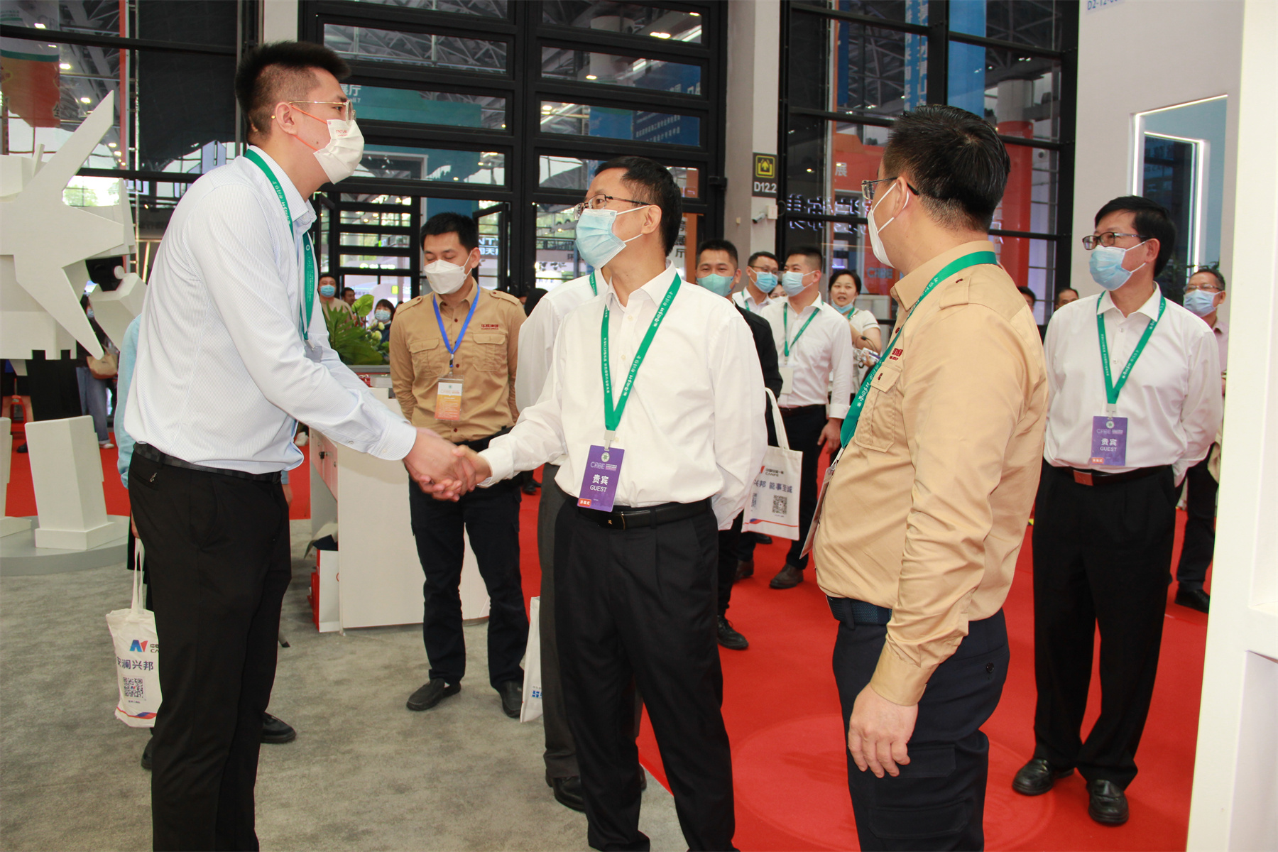 2022年11月27日,建博会第三日,自治区住房城乡建设厅厅长唐标文莅临vsport展厅指导,深入了解vsport绿色装配产品体系,对vsport12小时完成展位装配的创新做法给予了高度肯定。vsport集团杨景忠董事长热情接待,并对vsport绿色装配产品的现状及发展战略进行汇报。