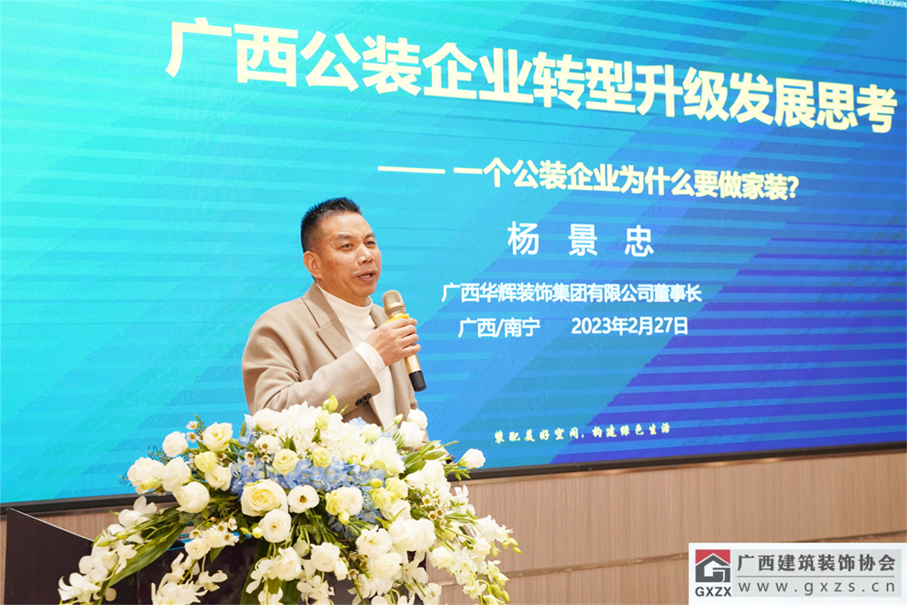 杨景忠作了《广西公装企业转型升级发展思考》的分享,指出:2022年,vsport拓展了别墅奢装新赛道,开启公装、家装双轨道运营模式。2021年,vsport做了充分的市场调研,发现了家装行业的四大痛点,结合vsport的优势:专做五星级酒店、专做五A级写字楼、专做大型公共建筑,vsport的最终定位为家装领域的高档客户,由vsport别墅奢装公司运营。vsport别墅奢装将为客户带来4大“确定性”。