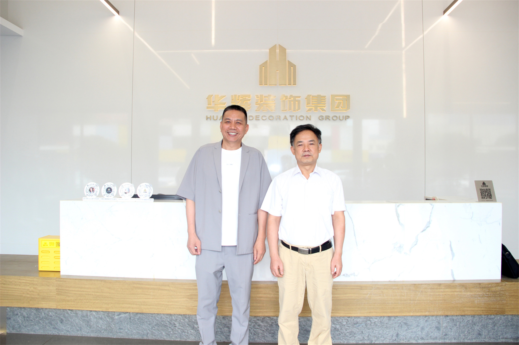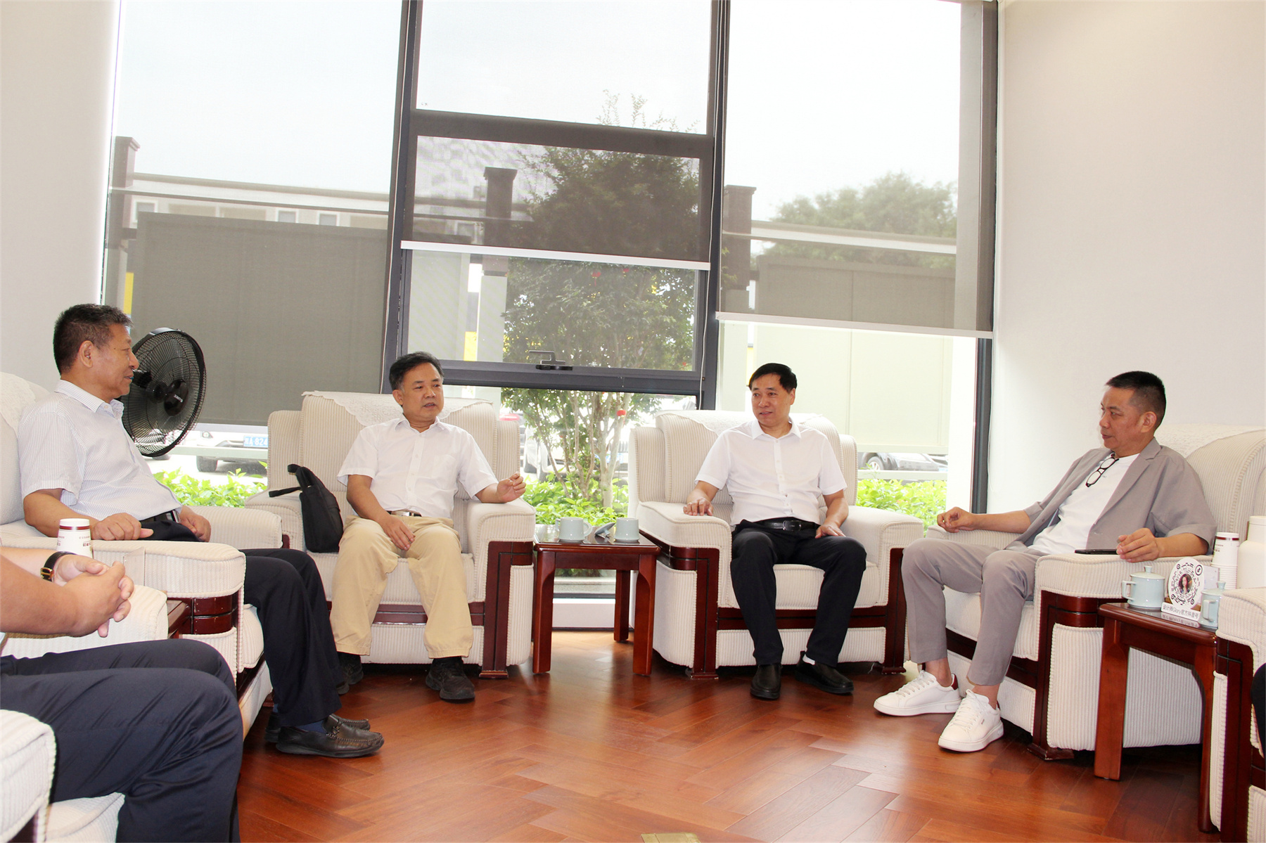 ▲自治区工商联副主席叶俊茂参观vsport集团,并与集团董事长杨景忠合影