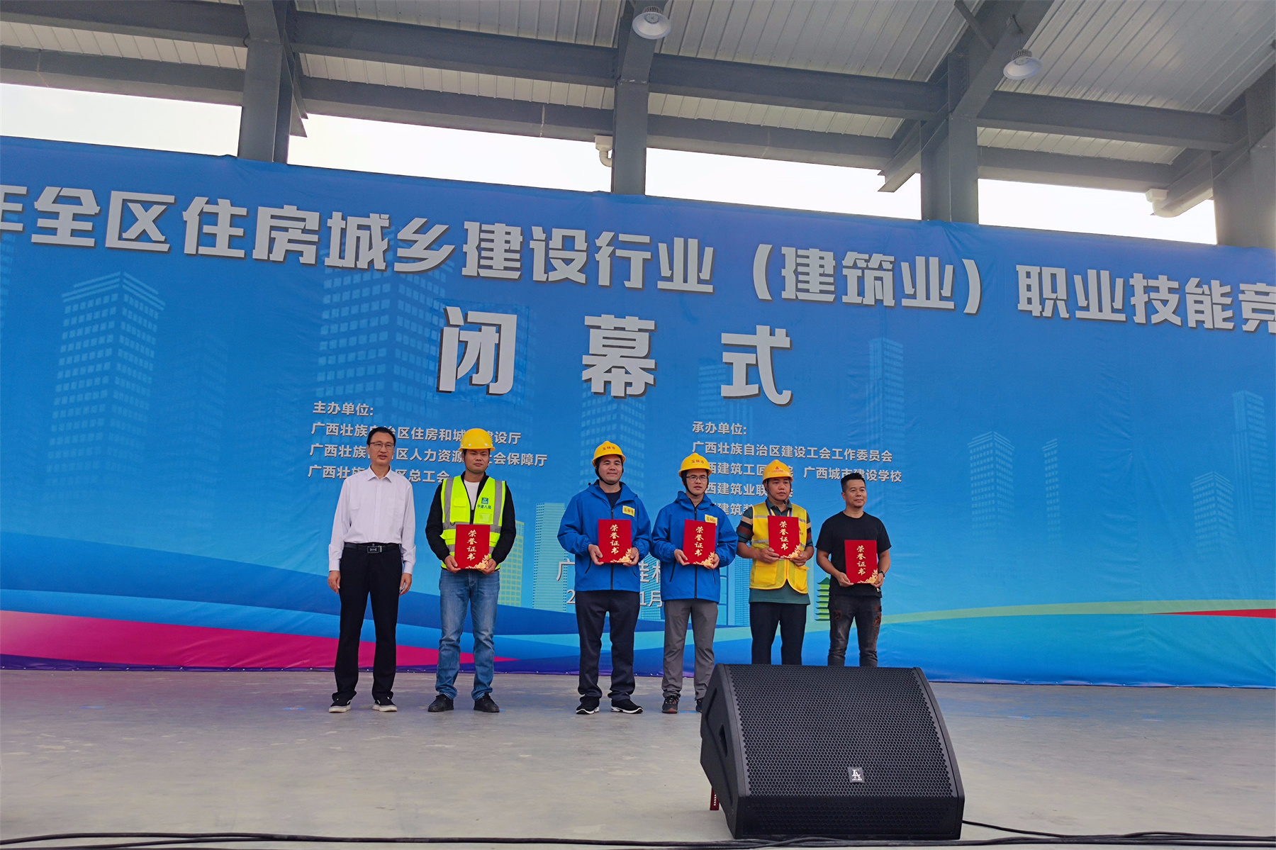 11月2日,本次职业技能竞赛开幕式,自治区住房城乡建设厅党组成员、副厅长黎旭标,自治区总工会党组成员、副主席韦克轩,自治区住房城乡建设厅人教处处长傅波,自治区总工会产业工会工作部部长刘文伟,广西建设工会副主任(主持工作 )、二级调研员邹丽萍,桂林市住房城乡建设局党组成员、副局长萧喜生,广西城市建设学校党委书记、校长蒋以明,广西建筑业联合会会长黄大友,广西建筑装饰协会会长庞耀国等领导出席了开幕式。