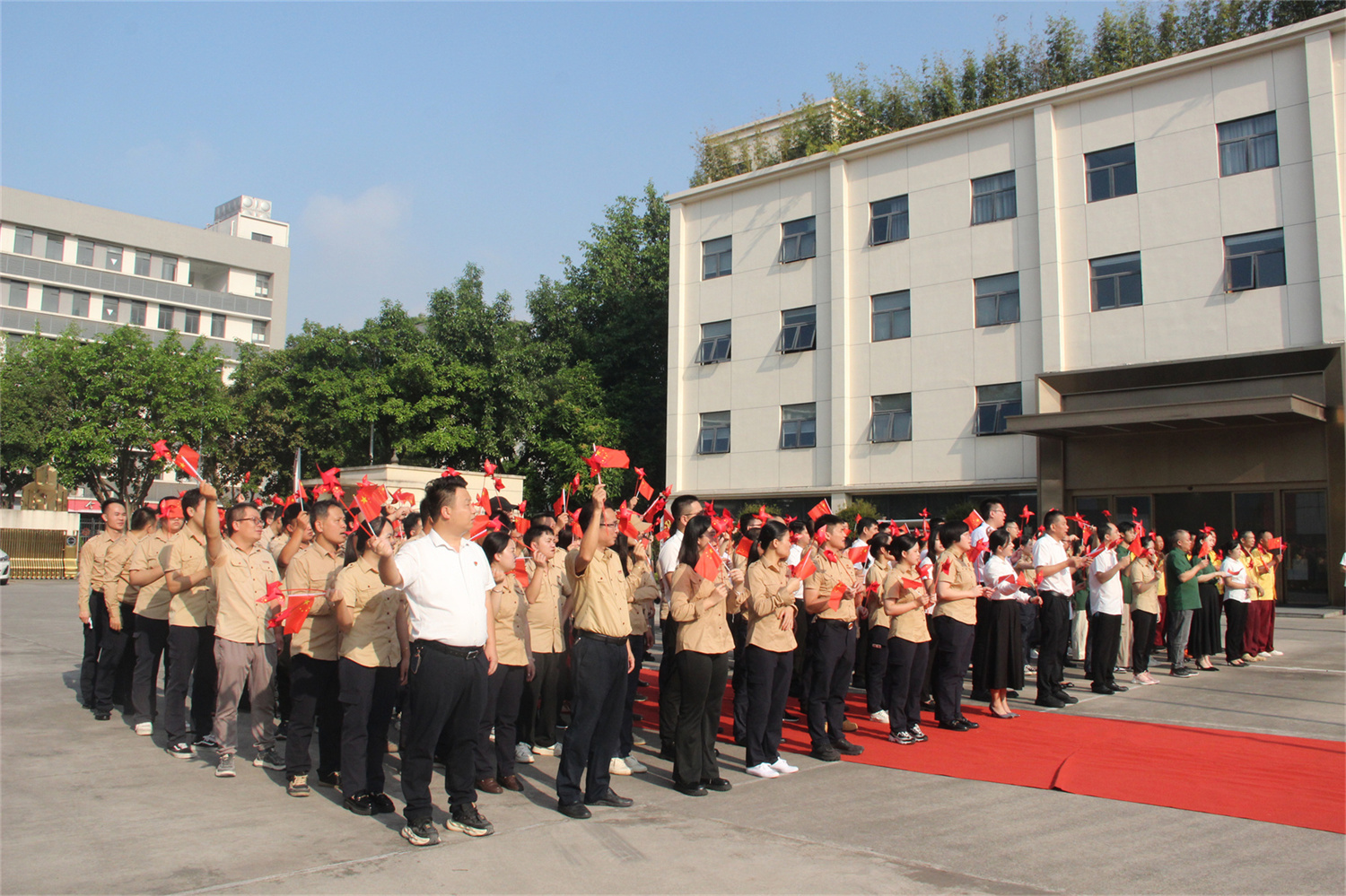 从历史深处走来,向着民族复兴前行。中华人民共和国即将迎来75周年华诞,vsport装饰集团于9月27日在公司广场举行了“盛世华诞 喜迎国庆”升旗仪式。公司员工共同见证了这一庄严而神圣的时刻。