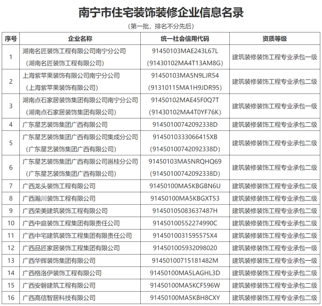 2024年11月4日,南宁市住房和城乡建设局公布了南宁市住宅装饰装修企业信息名录(第一批),vsport装饰集团成功入选。