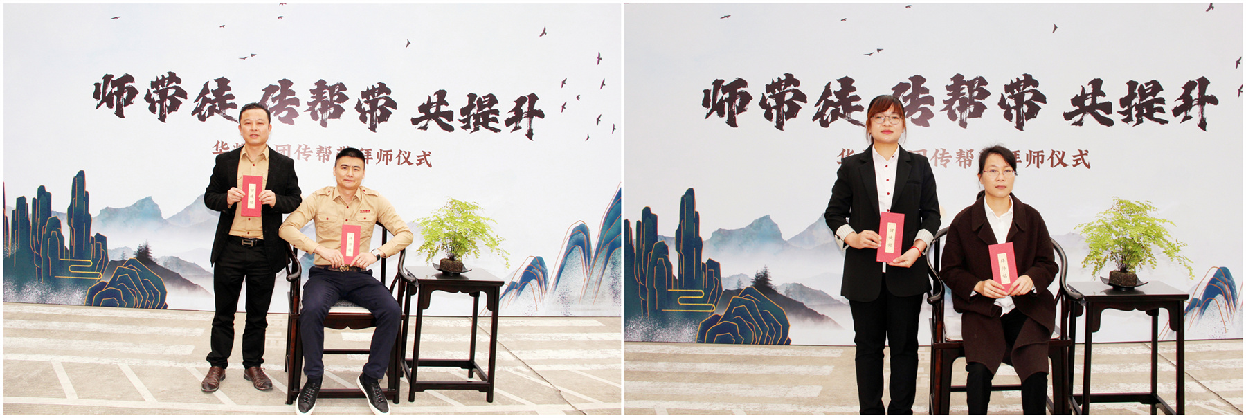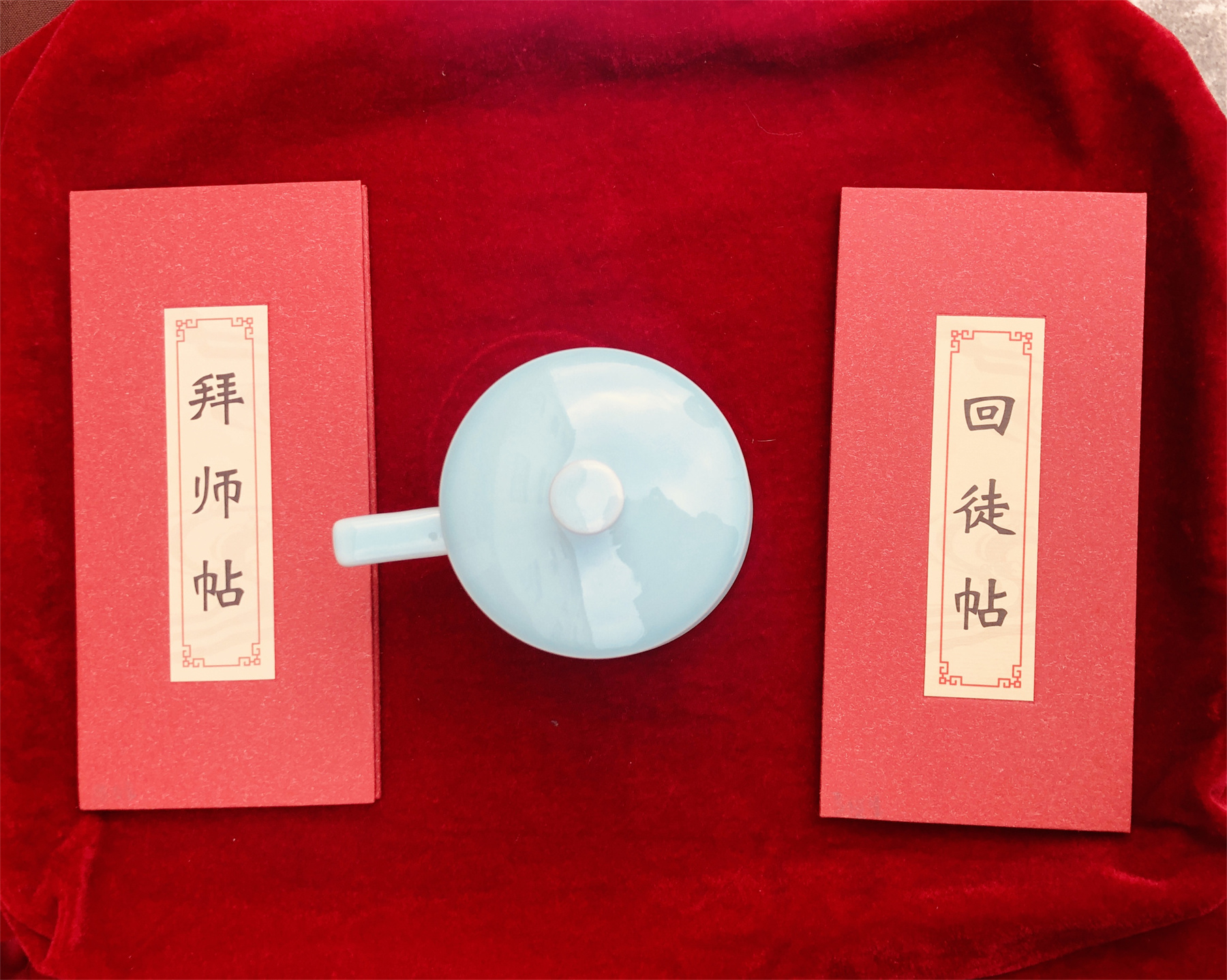 拜师仪式上,在大家的见证下,徒弟向师傅鞠躬并敬上一杯茶以表拜师学艺的诚意;徒弟呈递拜师帖,随后师傅回赠回徒帖。这种传统的拜师仪式,明确了双方师徒关系,同时使师傅更有荣誉感和责任感,更好的传道、授业、解惑;使徒弟更有归属感和使命感,充分做到尊师、好学、求艺。